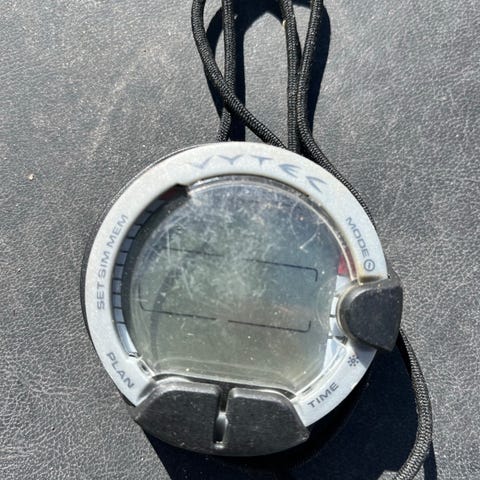 En Shearwater Teric till salu. Nästan helt oanvänd, den har ej varit under ytan. Endast använd när inställningar efter mina preferenser ställdes in i dykdatorn. Orsak till försäljning p.g.a. all dyk detaljer i min ägo så är endast denna dykdator som inte har varit i bruk eller i fortsatt kontinuerlig användning. Mitt tidigare syfte med detta köp av denna dykdator, så var tanken att den skulle användas till semester dyken d.v.s. för dyk utomlands, men dem har ej blivit av. Därmed en önskan om att dykdatorn hittar en ny ägare som nyttjar dykdatorns kapacitet till fullo. Kapital från eventuell försäljning går vidare till nya investeringar i min fortsatta "karriär" inom dykning.