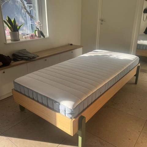 Säljer en ny 90*200 säng med madrass pga felköp. Popsicle, nypris säng 9000 kr.