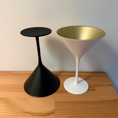 Två Martini glas med texten "Since 1863", siffror "150" och med röd detalj i botten, rimmer 250 ml.