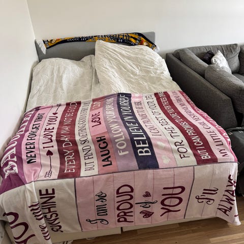 Sängen är stabil och har använts normalt. Mindre bruksspår kan förekomma men inget som påverkar funktionen.
