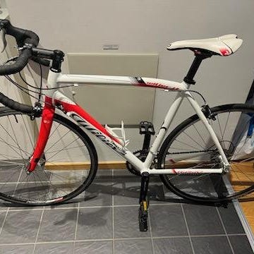 Cykel för den som vill börja cykla landsvägscykel. I gott skick. Jag är knappt 170 med ovanligt långa ben, men passar bättre till man 180 eller längre.
