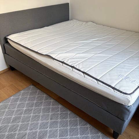 Har lite slitage och små fläckar på kanterna från att ha flyttats, men inga fläckar på själva ”madrassen.”