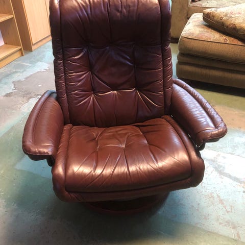Skinnfåtölj med fotpall från Norska kvalitetsmärket Ekornes.