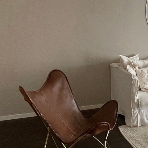 Ser knappt använd ut, inga repor i skinnet, inga fettfläckar och fint trä både i fot och på fåtölj-sidor.