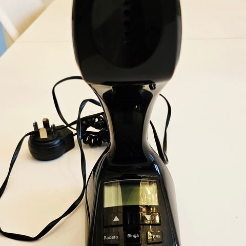 En röd äkta Cobra telefon. Använd men bra skick.