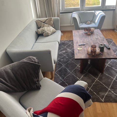 Soffa, fåtölj och soffbord