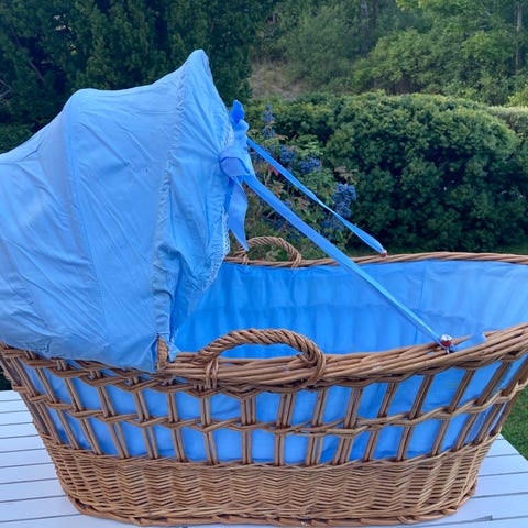 Säljer en fin stor korg perfekt till filtar, leksaker, handdukar mm som även kan vändas och användas som lantlig lampskärm.