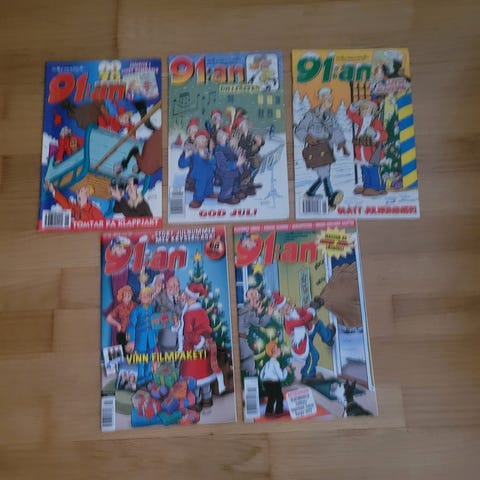 Fridolf serietidningar i blandade nummer. Fem olika tidningar med färgtryck och mjuka pärmar. Passar för läsning och som samlarobjekt för den som är intresserad av serietidningar och humorserier.