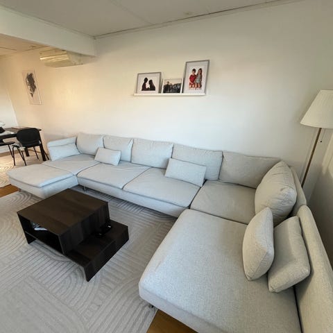 Hela soffan är 3,8 m bred