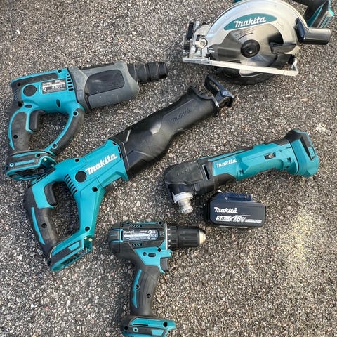Combokit med 5 st sladdlösa, kolborstfria maskiner. Innehåller DDF484Z borrskruvdragare, DHR242Z kombihammare, DJR187Z tigersåg, DHS680Z cirkelsåg och DTD153Z slagskruvdragare. Levereras med 3 st 5,0 Ah batterier, DC18RC laddare samt tygväska med hjul.