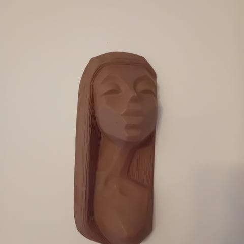Reliefskulptur av Karin Segerström med signerad baksida och årtal 1939. Motivet föreställer en stående nakenfigur i profil. Verket är utfört i ett grönt material med lätt skimrande yta och oregelbundet formad bakgrundsplatta. Skulpturen är avsedd för väggupphängning och passar som dekorativ väggkonst i hem- eller kontorsmiljö.