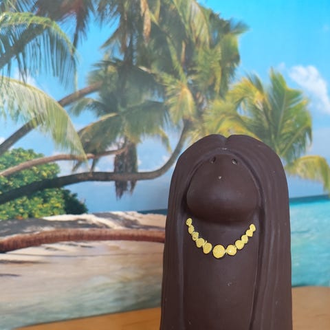 Väggskulptur i form av ett stiliserat kvinnohuvud. Skulpturen är gjord i brun keramik, hår med förenklade, mjuka ansiktsdrag. Passar som dekorativ inredningsdetalj i exempelvis vardagsrum, hall eller sovrum. 29 cm hög