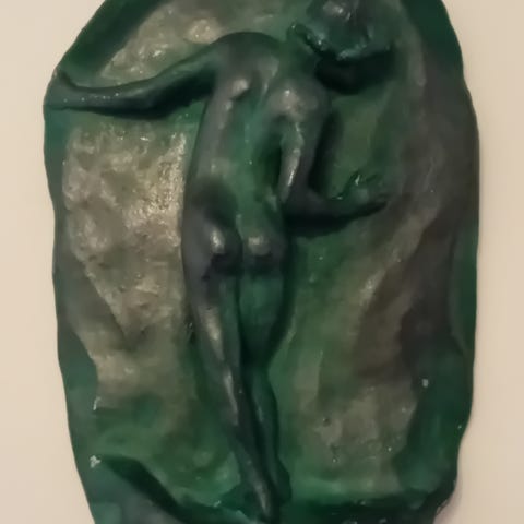 Väggskulptur kvinnohuvud keramik brun sign Berrtll