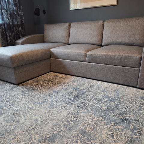 Divansoffa i grå färg som med några år på nacken fortfarande har perfekt stabilitet och håller formen. Inga sitt avtryck, har stått i ett rökfritt hem. Avtagbar textil som kan tvättas i 30 grader. 3 avlånga kuddar medföljer. Kan I många flera år ge komfort och vacker inredning.