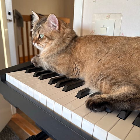Det nedkommer kattlåda samt leksaker.