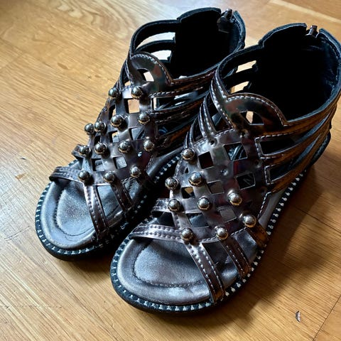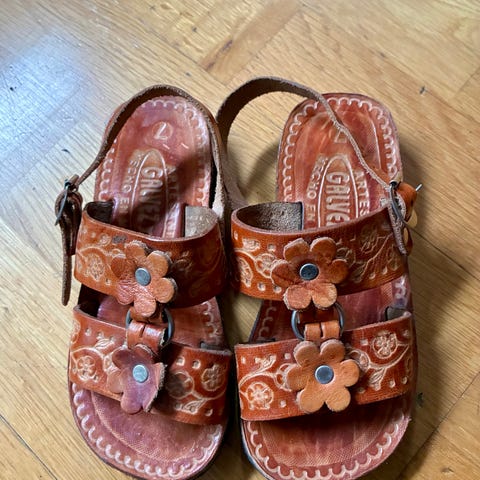 Barn sandaler för flicka i storlek 27, innermått ca17.4 cm. Sandalerna har en mönstrad sula med havstema i grönt och rosa färger. Remmarna är rosa och justerbara för att passa foten. Sulan är svart med mönster för bättre grepp. Passar för vardagligt bruk under varmare väder.