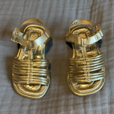 Fina sommar sandaler för flicka i storlek 27 med flera remmar och dekorativa nitar. Öppning med dragkedja bak för enkel på- och avtagning. Innermått ca 16 cm.