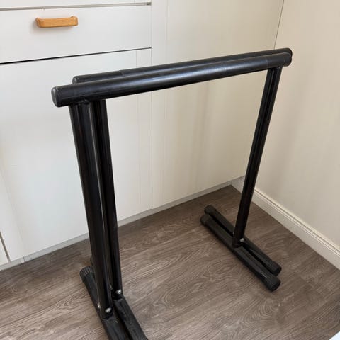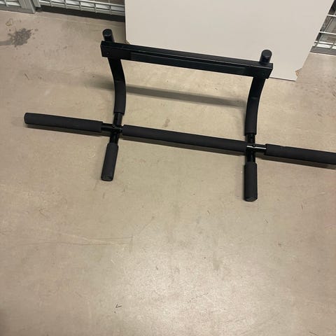Pullupbar är i bra skick och lika stabil som när jag fick den. En modifikation som gjorts är att kanterna är avskurna eftersom jag tidigare hade lågt i tak och dem gick snett neråt. Funkar fortfarande att göra pullups med brett grepp på den. Skruvar inkluderas men ej väggplugg.