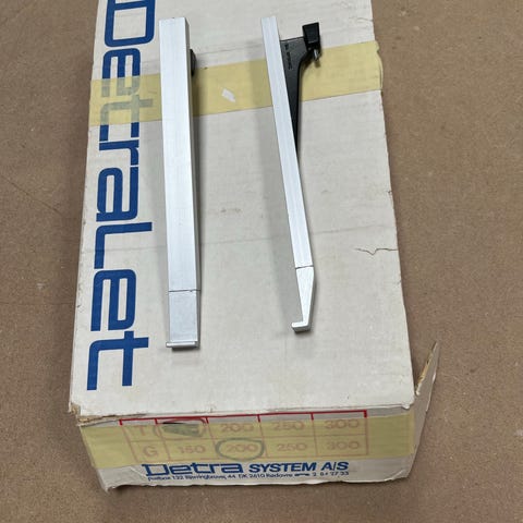 Två konsoller i svart metall aldrig monterade. Skall se ut som handsmidda.