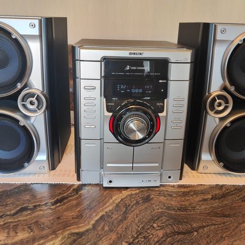 Sony stereopaket med flera inbyggda ljudkällor. Systemet har skivspelare för vinylskivor, cd-spelare för 5 skivor samt dubbla kassettbandspelare. Frontpanelen har reglage för volym, val av ljudkälla och uppspelning.
