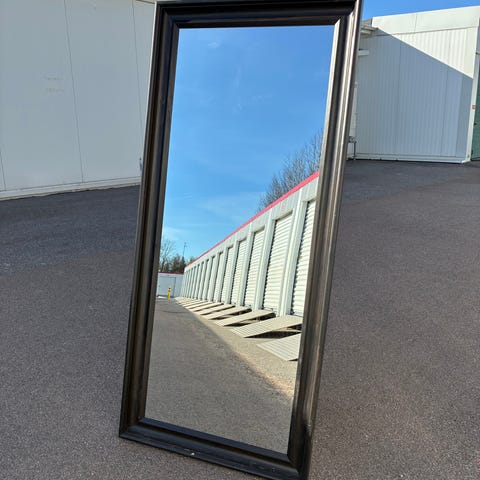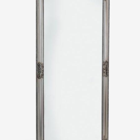 Jysk spegel med dekorativt utformad ram i silverfärg.