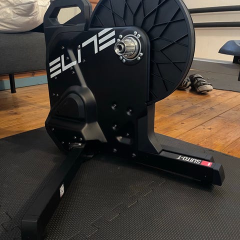 Elite turbomuin cykeltrainer för inomhusträning med landsvägscykel. Tränaren har en monterad kassett, vilket gör det möjligt att koppla på cykelns kedja direkt på tränaren. En separat framhjulshållare i svart/rött ingår för stabil placering av framhjulet. Produkten är avsedd för användning med bakhjulslös montering där cykelns bakgaffel fästs direkt i trainern. Lämplig för cyklister som vill träna inomhus med sin egen cykel.