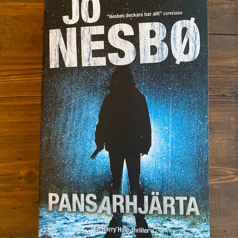 Två pocketböcker av Jo Nesbø. Titlarna är "Snömannen" och "Pansarhjärta". Båda är kriminalromaner/deckare i serien om Harry Hole. Böckerna är i pocketformat och på svenska. Passar för läsare som är intresserade av spänning och nordisk kriminallitteratur.
