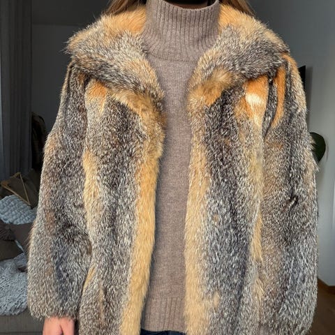 Jättefint pälsjacka för dam i storlek M. Jackan är brun och tillverkad i pälsmaterial. Modellen är en ytterjacka med längre längd och bred krage. Passar som varm ytterklädsel under kallare väder. Färgskiftningar i pälsen ger ett melerat intryck. Jackan har rak passform och är avsedd för vardagsbruk eller mer uppklädda tillfällen utomhus.