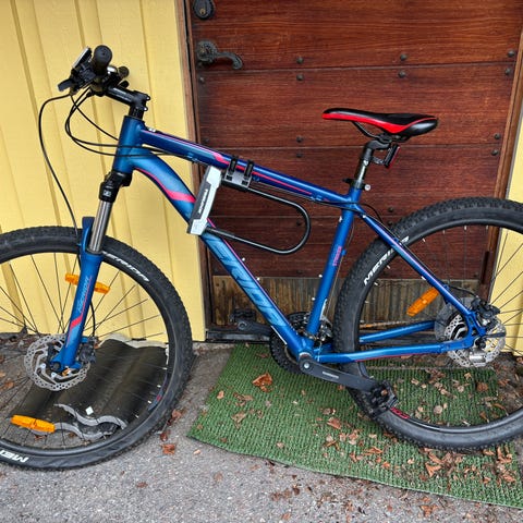 Scott mountainbike för unisex med ramstorlek S och 27,5" hjul. Cykeln har en hardtail-ram i aluminium med framgaffel med fjädring, skivbromsar och grovmönstrade däck anpassade för terrängkörning. Passar för stigcykling, pendling och vardagsbruk på blandat underlag. Färg: svart med orange detaljer.