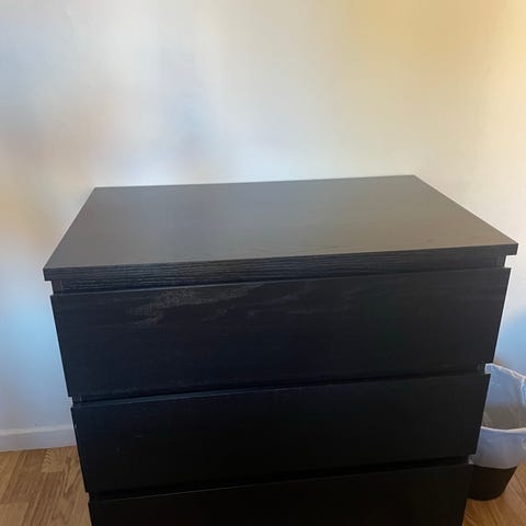 Hurts med 3 lådor, i svart utförande. Lådornas insidor är vita. Lämplig för användning i sovrum eller kontor.