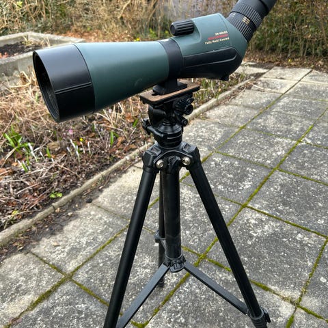 Sky-Watcher Startravel 120 teleskop med stativ och två ögon linser som med kommer. Helt fungerade men dock lite synlig rost på skruvarna.