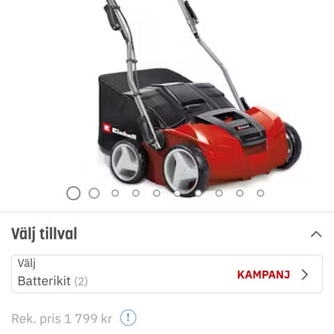 Wolf-Garten vertikalskärare i röd och gul färg. Maskinen har handtag med styrbygel och uppsamlare baktill för gräs- och mossrester. Lämplig för luftning och vertikalskärning av gräsmatta i trädgård. Drivs fram manuellt genom att skjutas över gräsmattan. Konstruktion i metall och plast med hjul för enkel förflyttning. Använd en gång förra säsongen, nypris ca 1800kr