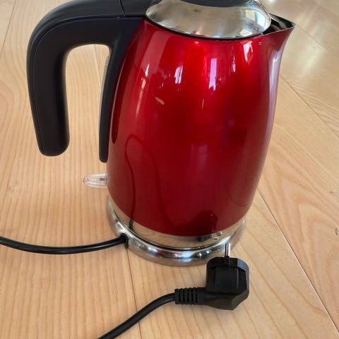 Mycket effektstark vattenkokare. Värmer två liter vatten på nolltid. Några små fel i färgen finns, som synes på bild. Pryder sin plats i vilket kök som helst. Nypris ligger något över 600 kr, mitt pris är 200 kr.