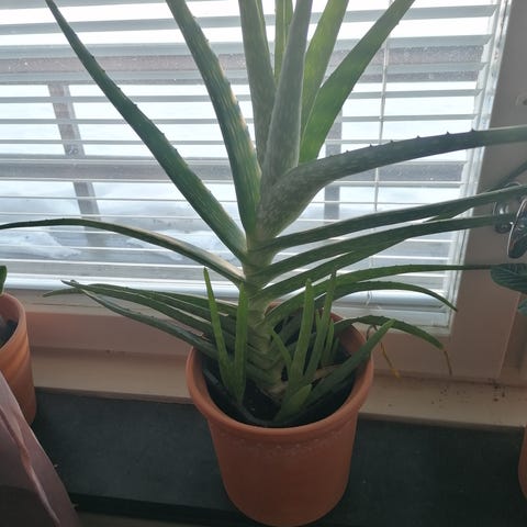 Den växer och frodas men behöver nog lite ny jord. Den blommade helt fantastiskt i höstas men ingen i familjen tål den starka doften tyvärr.