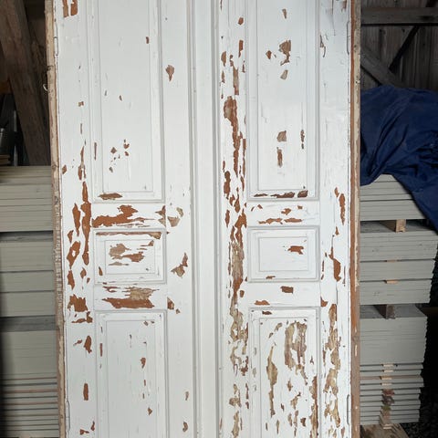 Träinnerdörrar med klassiska spegelpaneler i olika utföranden. 2st dörrar med fyllningar och 1st med övre glasruta i krysspröjs. Passar som innerdörrar och för projekt där äldre dörrar i trä önskas.