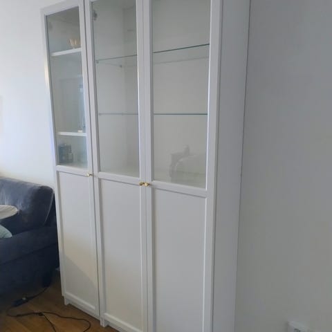 Med inredningen ( hyllplan och klädstång)