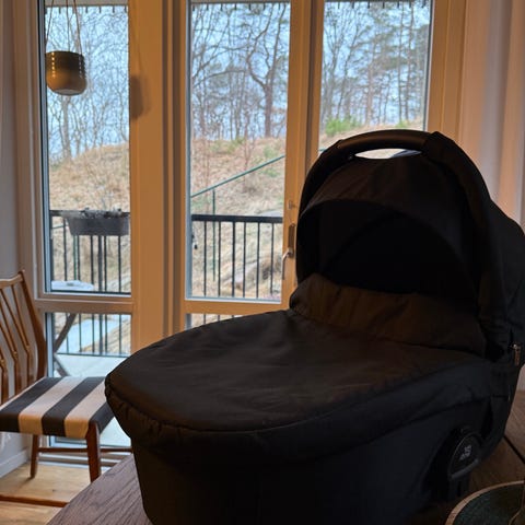 Britax liggdel och babyskydd i svart. Liggdel med madrass och sufflett, lämplig för nyfödd och spädbarn. Babyskydd med bärhandtag, internsele och sidokrockskydd, anpassat för montering i bil bakåtvänt. Passar som komplett lösning för transport av spädbarn både i vagn och bil.