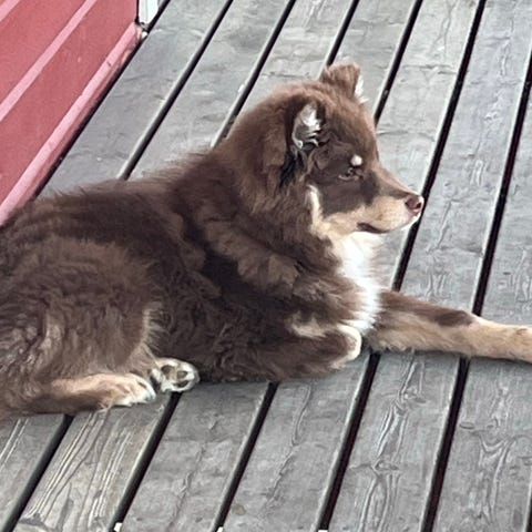 Vår fantastiskt fina tik Dana, 6 år, behöver ett nytt föralltid-hem. Hon är en glad, pigg tjej som älskar människor. Hon är väldigt "nära" sin familj, älskar kel och att bli klappad. Hon går också bra ihop med katter och andra hundar i familjen. Kort sagt, hon älskar allt och alla. Hon har alltid varit frisk, behöver nog ta lite tandsten men i övrigt ingenting. Har aldrig varit hos veterinär annat än vid vaccinationer. Älskar att få vara med sin familj, älskar promenader och att få springa lös i naturen. Säker på grundläggande komandon som vänta, stanna, kom. 100% rumsren. Hon är en toppenhund och har många härliga år med fin gemenskap att ge til sin framtida familj. Viktigt att Dana hamnar hos en bra och trygg familj som har tid att ge henne kärlek och stimulans. Oseriösa undanbedes.