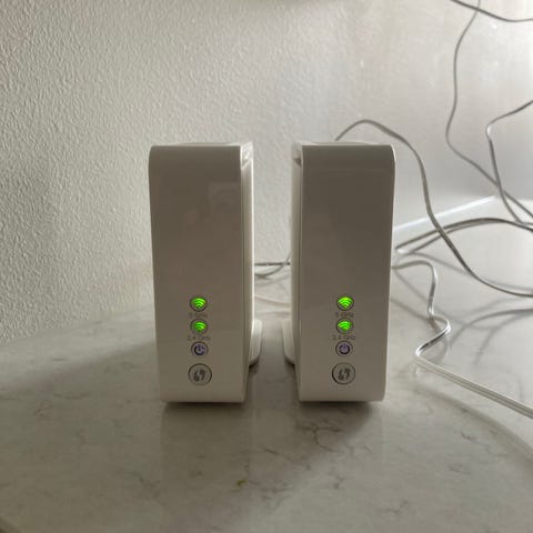 Två 5G antenner som jag använt till min 5G router. Funkar fint, ger mig 500+ Mbit/s nedladdningshastighet. Används i par för 5G.