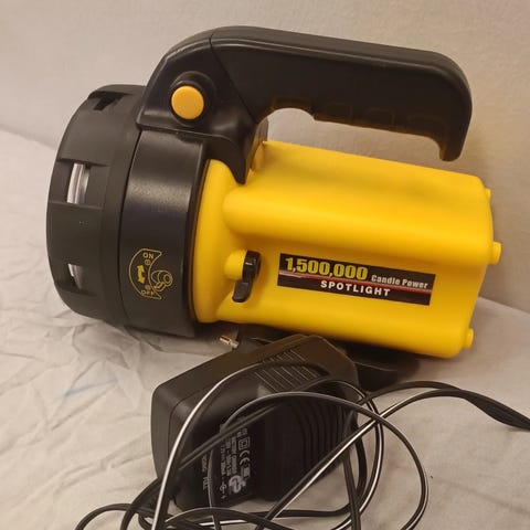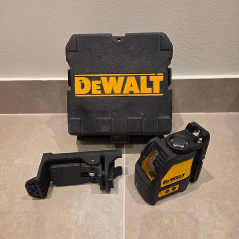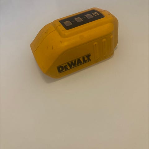 Dewalt pannlampa i gul och svart färg med justerbart elastiskt pannband. Lampan har en central LED‑ljuskälla framtill och en extra ljuspanel undertill. Strömbrytare sitter på sidan av lampan. Passar för arbete, fritidsaktiviteter och andra situationer där handsfritt ljus behövs.