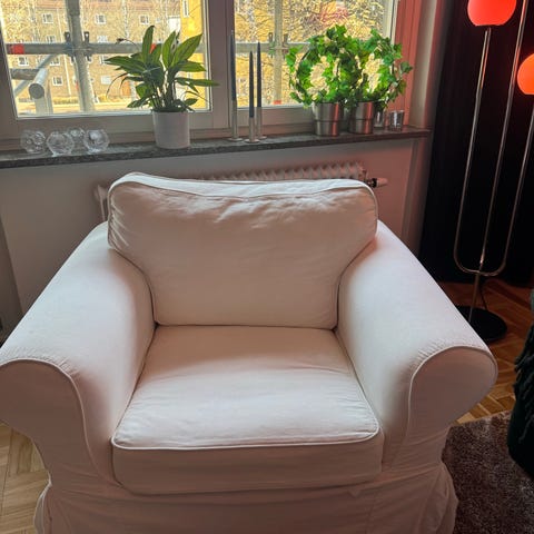 Väldigt skön och stor fotölj i howardmodell. Tyvärr något smutsig, men kan säkert göras iordning!