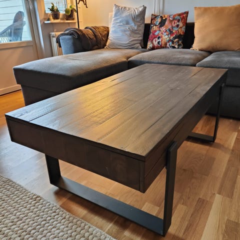 Soff bord i mörkt trä design , trä imitation mått 120x 65 cm , höjd 53 cm