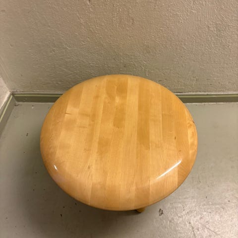 Fint exemplar av pallen ”Palle” tillverkad av K-J Pettersson & Söner i Storvreta. Massiv betsad furu, 1970-tal. Längd 60 cm, bredd 35 cm, höjd 36 cm.
