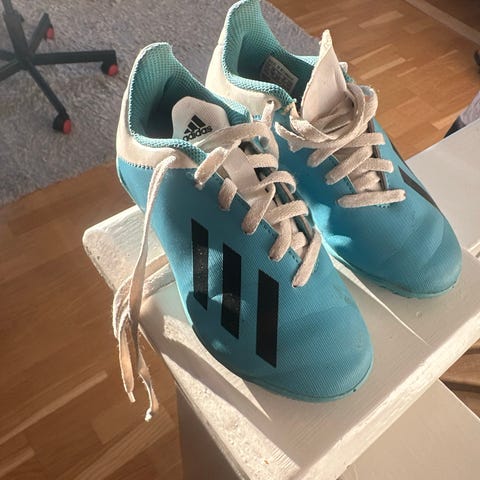 Adidas Messi fotbollsskor blå svart, Puma fotbollsskor svart