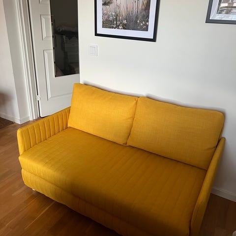 Det är en blå bäddsoffa i väldigt fint skick