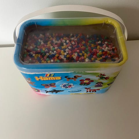 Hama pärlor set i flera färger. Innehåller pärlor sorterade i mindre burkar och fack, samt en påse lösa pärlor. Hämtas i Skövde. Skriva barnen rensa andra hållet.