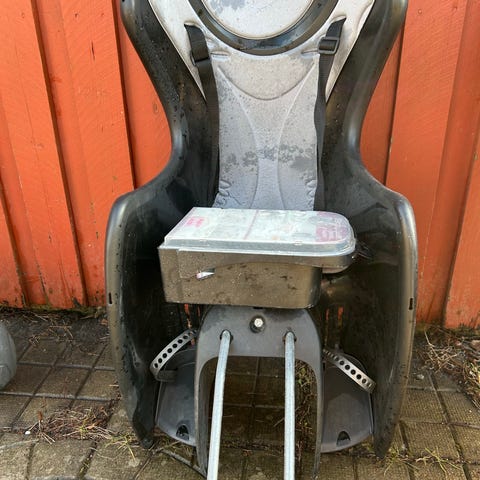 Hamax cykelsits för barn upp till cirka 22 kg. Sitsen är monterad över bakhjulet och har hög rygg, sidostöd och fotstöd. Avsedd för montering på pakethållare.