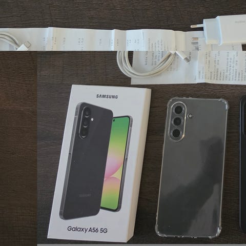 Samsung Galaxy A56 5G 128 GB färg grå med svart skalskydd