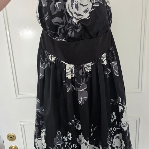 Klänning för dam i storlek S. Färgen är rosa med ett mörkt band i midjan. Modellen är ärmlös med smala axelband och figurnära passform. Lämplig för exempelvis fest eller andra mer uppklädda tillfällen.