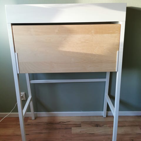Stabilt och rejält bord med praktisk förvaring undertill.